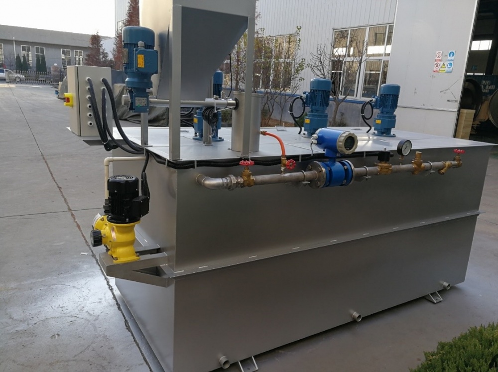 該裝置可將粉狀高分子聚合物(或其他類似粉狀物料)如硫酸鋁、氯化鋁、堿式氯化鋁 (PAC)、硫酸鐵、氯化鐵、聚丙烯酰胺(PAM)、高錳酸鉀、活化硅酸(水玻璃)、粉末活性炭、有機(jī)聚合電解質(zhì) (Polymers)等配制為規(guī)定濃度溶液的成套設(shè)備。溶液制備全過(guò)程自動(dòng)、連續(xù)。